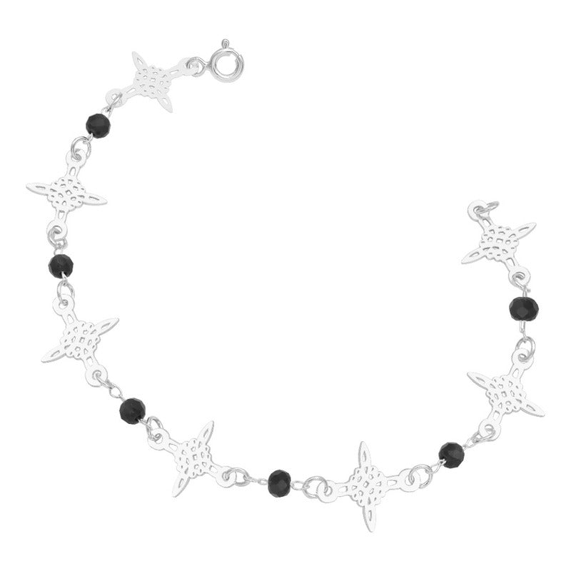 Pulsera Nudo De Bruja Laser Cristales Regalo Mujer Plata 925 Negro 19 Cm