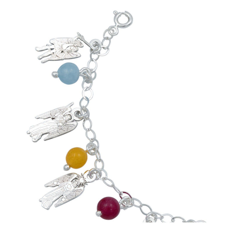 Pulsera Ajustable 7 Arcangeles Chakaras Laser Plata .925 Multicolor 6 Cm 19 Cm