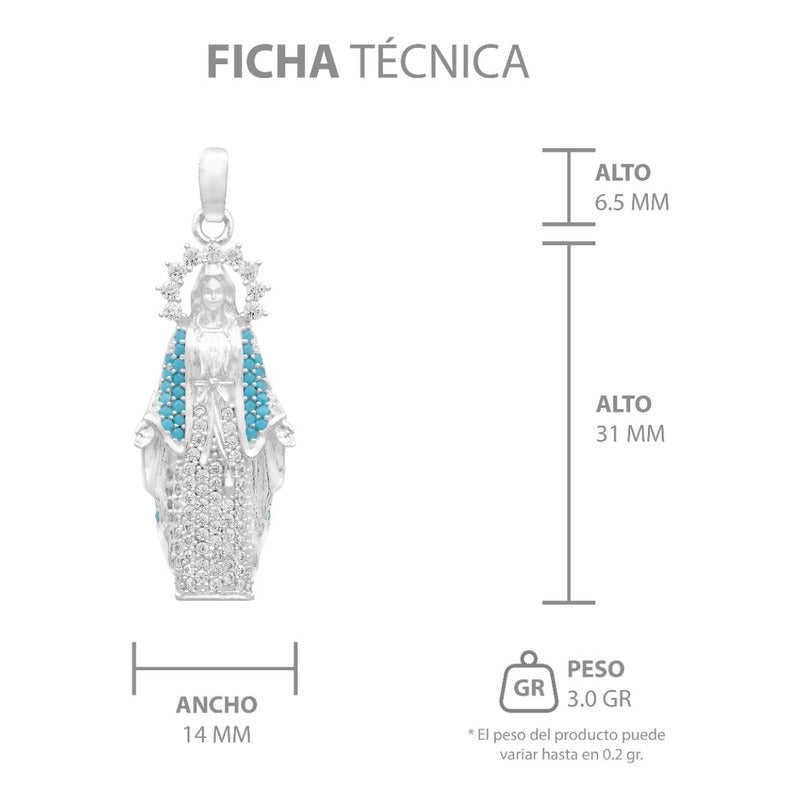Dije Virgen Milagrosa Chica Zirconias Plata 925 4 Cm Celeste