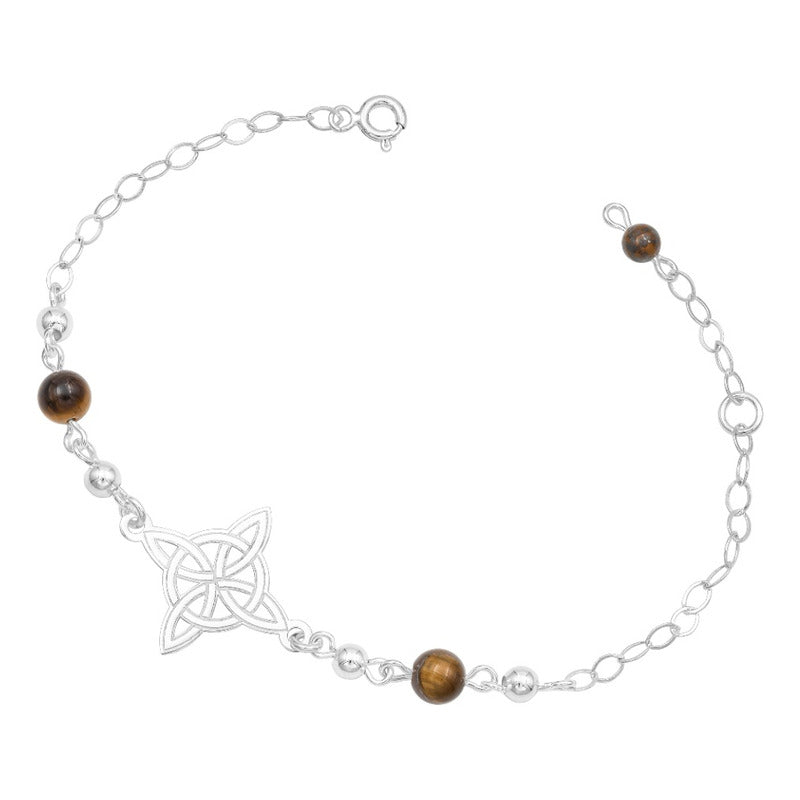 Pulsera Ajustable Mujer Nudo De Bruja Laser Bolas Plata 925 Café 6 Cm 20 Cm