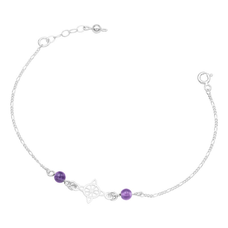 Pulsera Ajustable Nudo Bruja Figaro 3x1 Bolas Plata 925 Violeta 6 Cm 20 Cm