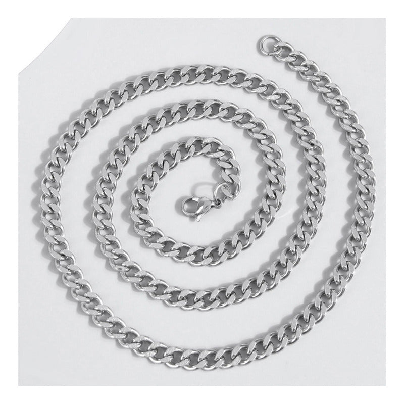 Cadena Collar Cubano Hombre Mujer Acero Inoxidable Plateado Largo/ancho 45 Cm X 4 Mm