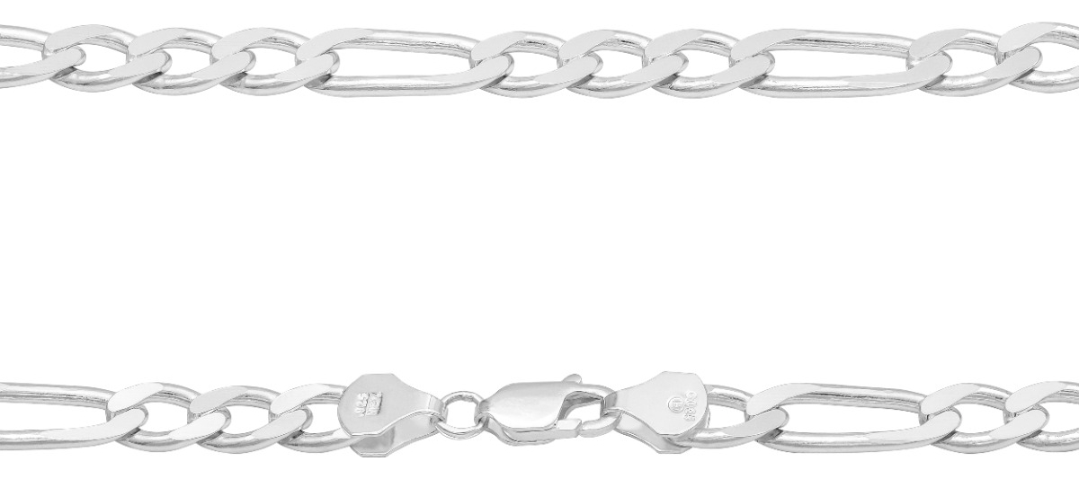 Cadena Figaro 3x1 Gruesa Hombre Regalo Plata 925 7 Mm 65 Cm Plateado