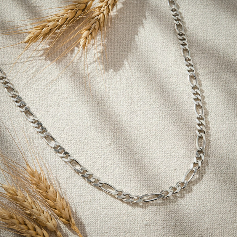 Cadena Figaro 3x1 Diamantada Unisex Plata 925 70 Cm X 4 Mm Plateado