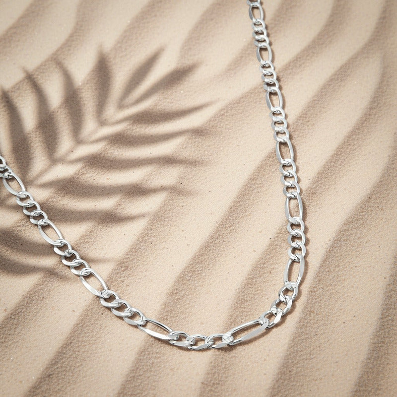 Cadena Figaro 3x1 Diamantada Hombre Plata 925 65 Cm X 5 Mm Plateado
